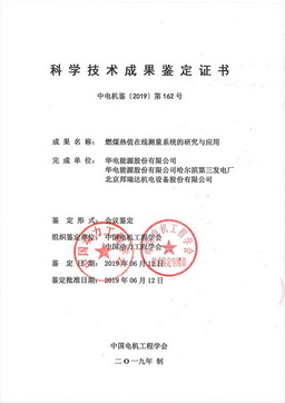 2019年6月12日,中國(guó)電機(jī)工程學(xué)會(huì)與中國(guó)動(dòng)力工程學(xué)會(huì)聯(lián)合召開了該產(chǎn)品的項(xiàng)目鑒定會(huì),鑒定委員會(huì)認(rèn)為:項(xiàng)目研發(fā)的新型燃煤熱值在線測(cè)量系統(tǒng),具備成本低、安全性高、運(yùn)行可靠的特點(diǎn),解決了火電廠燃煤熱值在線檢測(cè)的難題,為火電廠鍋爐燃燒控制和精細(xì)化管理提供了技術(shù)支撐,具有顯著的經(jīng)濟(jì)、社會(huì)效益和推廣應(yīng)用前景,居國(guó)際先進(jìn)水平。